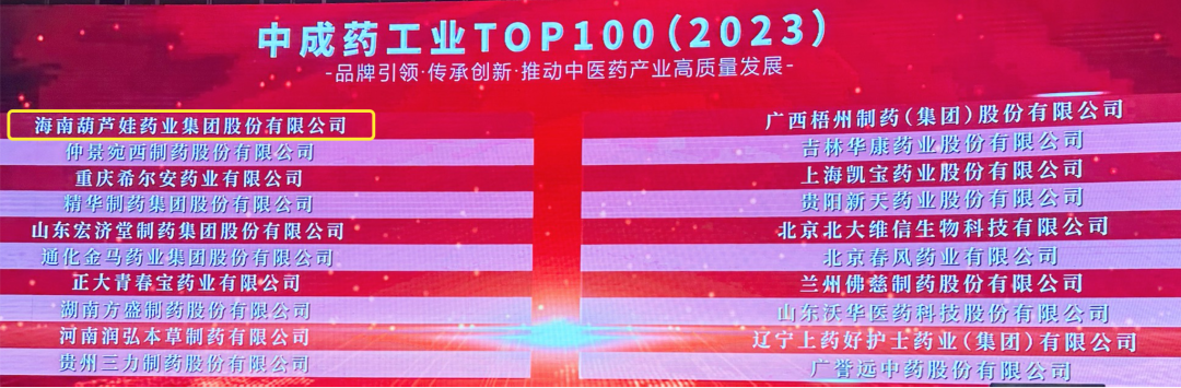 会上,还发布了“2023中成药工业TOP100”榜单,AG庄闲药业集团荣耀上榜。